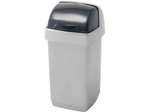 Sølvfarget avfallsdunk i kraftig plast med rullelokk - Størrelse H43xB23xD23 cm